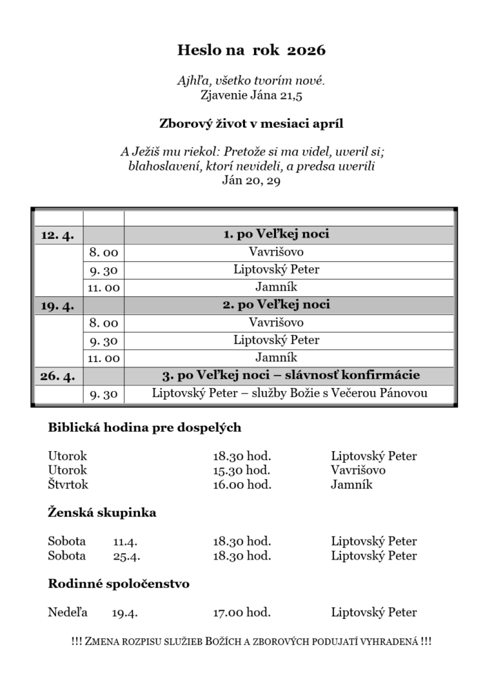 V nasledovnom článku si môžete vypočuť zvukový záznam zo služieb Božích – 1. nedeľa po Veľkej noci. PIESNE: 149, 292, 136, 295, A29.